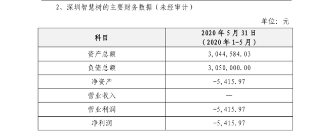 在公告中,银川皓泽跨境电商运营有限公司科技披露了深圳智慧树的主要财务数据(未经审计),如下图所示。